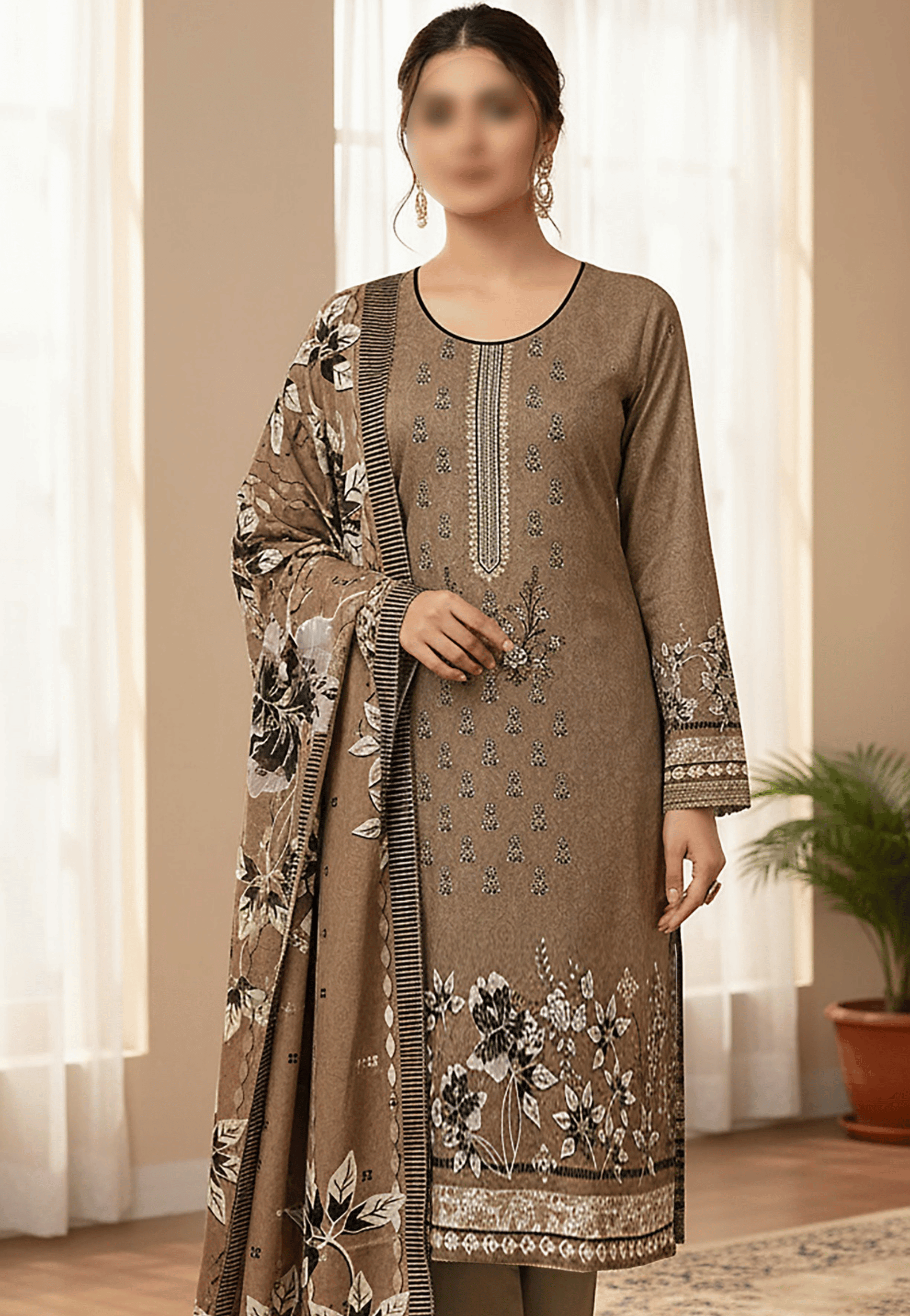 Golden Shamra – Embroidered 3-Piece Digital Print Suit